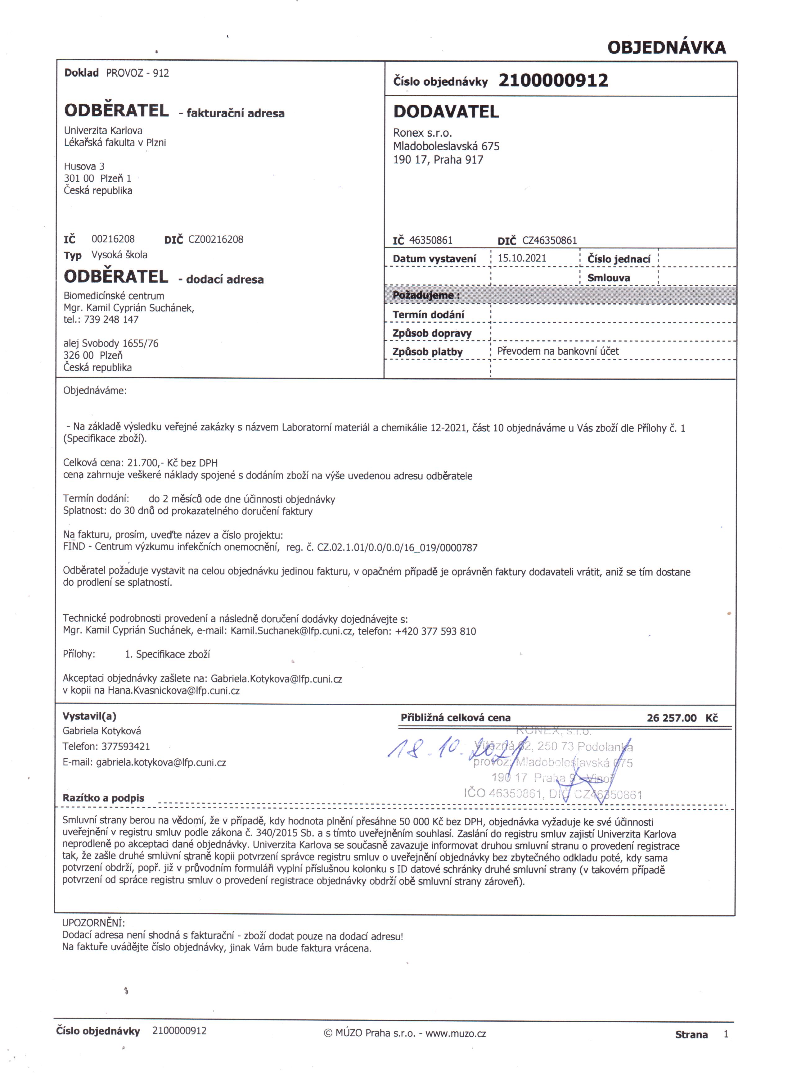 Stručný popis předmětu:Předmětem části veřejné zakázky je dodávka laboratorního materiálu a chemických výrobků dle specifikace uvedené v Příloze č. 1 (Specifikace zboží) výzvy k podání nabídek.